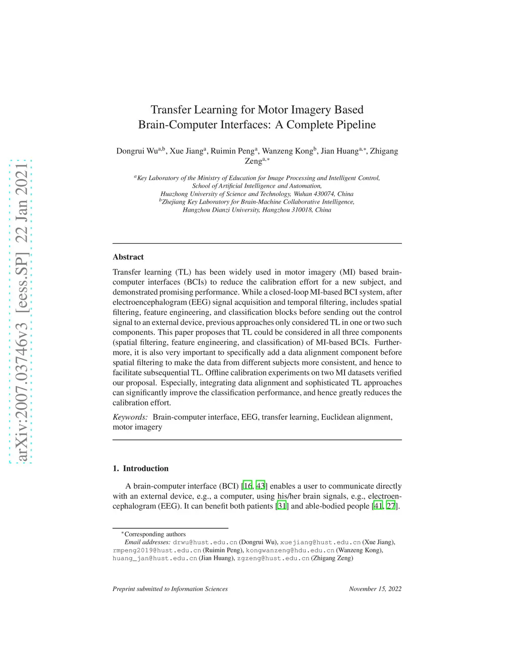Transfer Learning for Motor Imagery Based Brain-Computer Interfaces: A