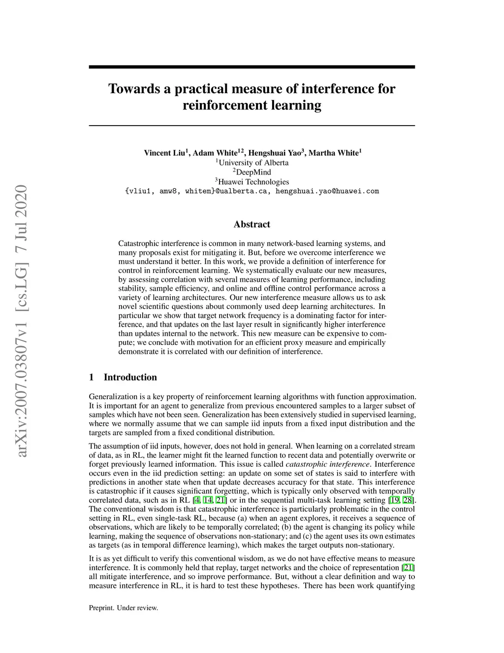 Catastrophic interference is common in many network-based learning systems, and many proposals exist for mitigating it. But, before we overcome interference we must understand it better. In this work, we provide a definition of interference for control in reinforcement learning. We systematically evaluate our new measures, by assessing correlation with several measures of learning performance, including stability, sample efficiency, and online and offline control performance across a variety of learning architectures. Our new interference measure allows us to ask novel scientific questions about commonly used deep learning architectures. In particular we show that target network frequency is a dominating factor for interference, and that updates on the last layer result in significantly higher interference than updates internal to the network. This new measure can be expensive to compute; we conclude with motivation for an efficient proxy measure and empirically demonstrate it is correlated with our definition of interference.