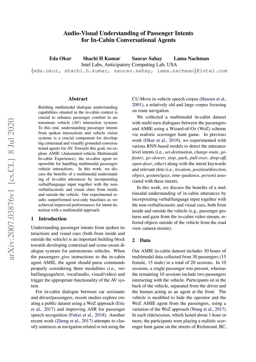 Audio-Visual Understanding of Passenger Intents for In-Cabin