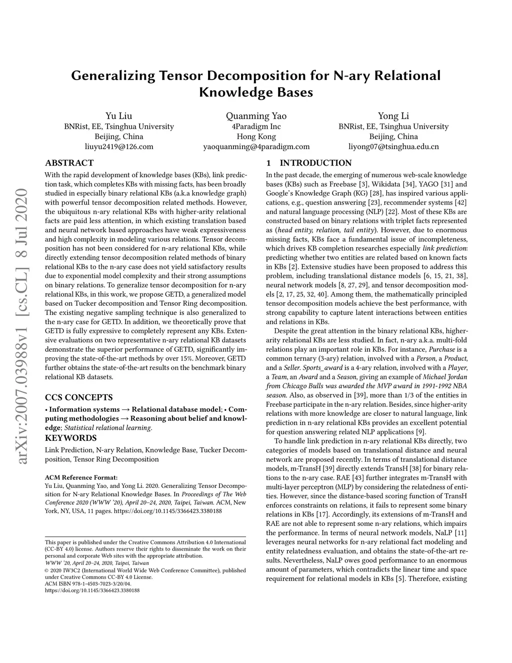 Generalizing Tensor Decomposition for N-ary Relational Knowledge Bases