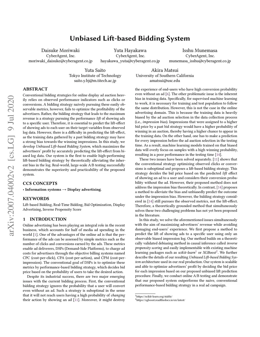 Unbiased Lift-based Bidding System