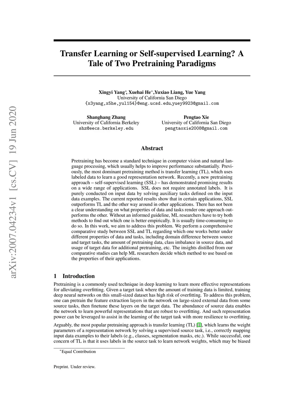 Transfer Learning or Self-supervised Learning? A Tale of Two Pretraining