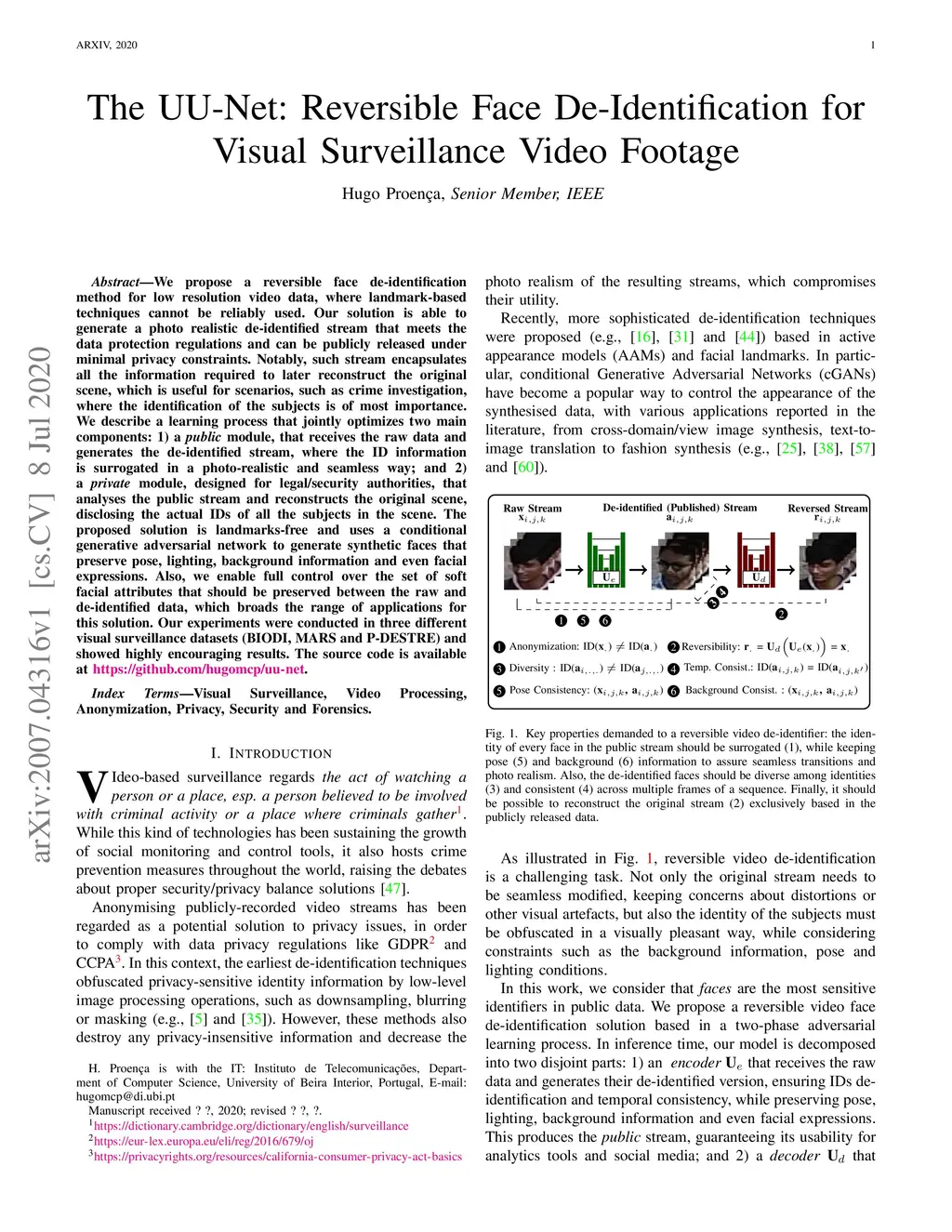 The UU-Net: Reversible Face De-Identification for Visual Surveillance