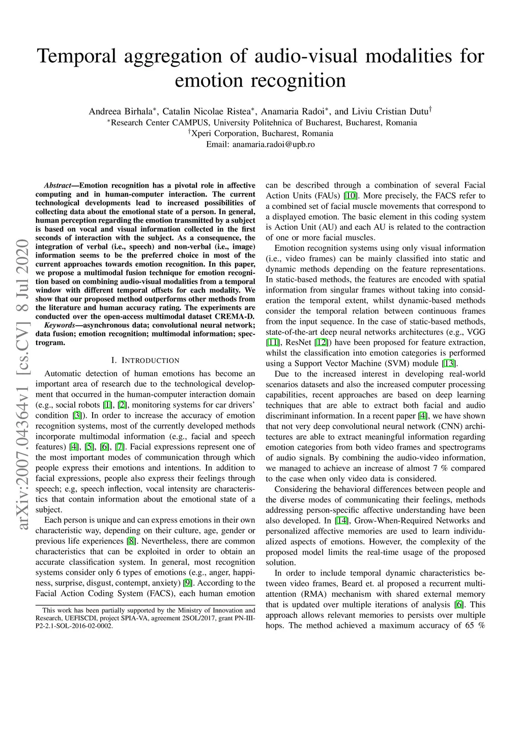 Temporal aggregation of audio-visual modalities for emotion recognition