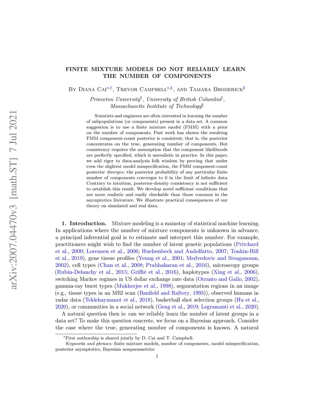 Scientists and engineers are often interested in learning the number of subpopulations (or components) present in a data set. A common suggestion is to use a finite mixture model (FMM) with a prior on the number of components. Past work has shown the resulting FMM component-count posterior is consistent; that is, the posterior concentrates on the true, generating number of components. But consistency requires the assumption that the component likelihoods are perfectly specified, which is unrealistic in practice. In this paper, we add rigor to data-analysis folk wisdom by proving that under even the slightest model misspecification, the FMM component-count posterior diverges: the posterior probability of any particular finite number of components converges to 0 in the limit of infinite data. Contrary to intuition, posterior-density consistency is not sufficient to establish this result. We develop novel sufficient conditions that are more realistic and easily checkable than those common in the asymptotics literature. We illustrate practical consequences of our theory on simulated and real data.