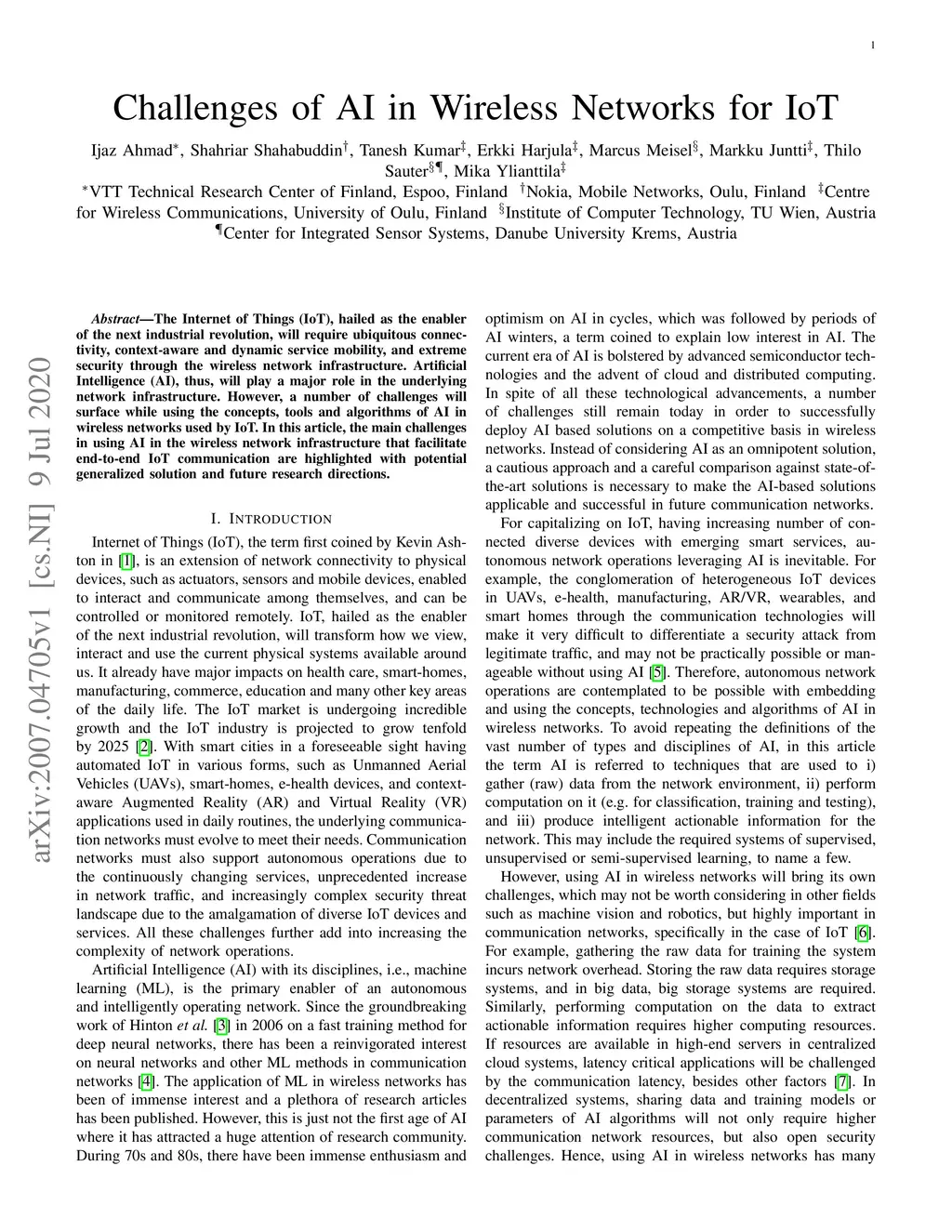 Challenges of AI in Wireless Networks for IoT