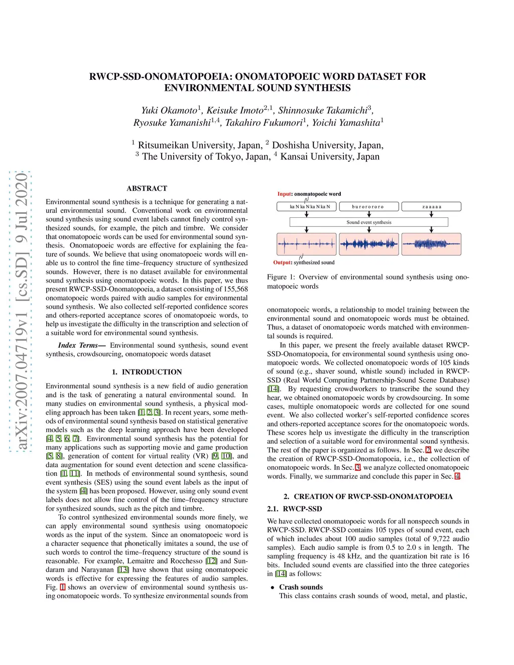 RWCP-SSD-Onomatopoeia: Onomatopoeic Word Dataset for Environmental Sound