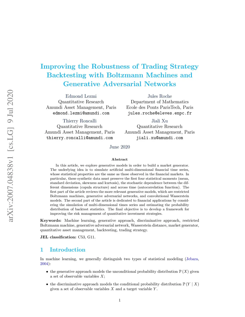 This article explores the use of machine learning models to build a market generator. The underlying idea is to simulate artificial multi-dimensional financial time series, whose statistical properties are the same as those observed in the financial markets. In particular, these synthetic data must preserve the probability distribution of asset returns, the stochastic dependence between the different assets and the autocorrelation across time. The article proposes then a new approach for estimating the probability distribution of backtest statistics. The final objective is to develop a framework for improving the risk management of quantitative investment strategies, in particular in the space of smart beta, factor investing and alternative risk premia.