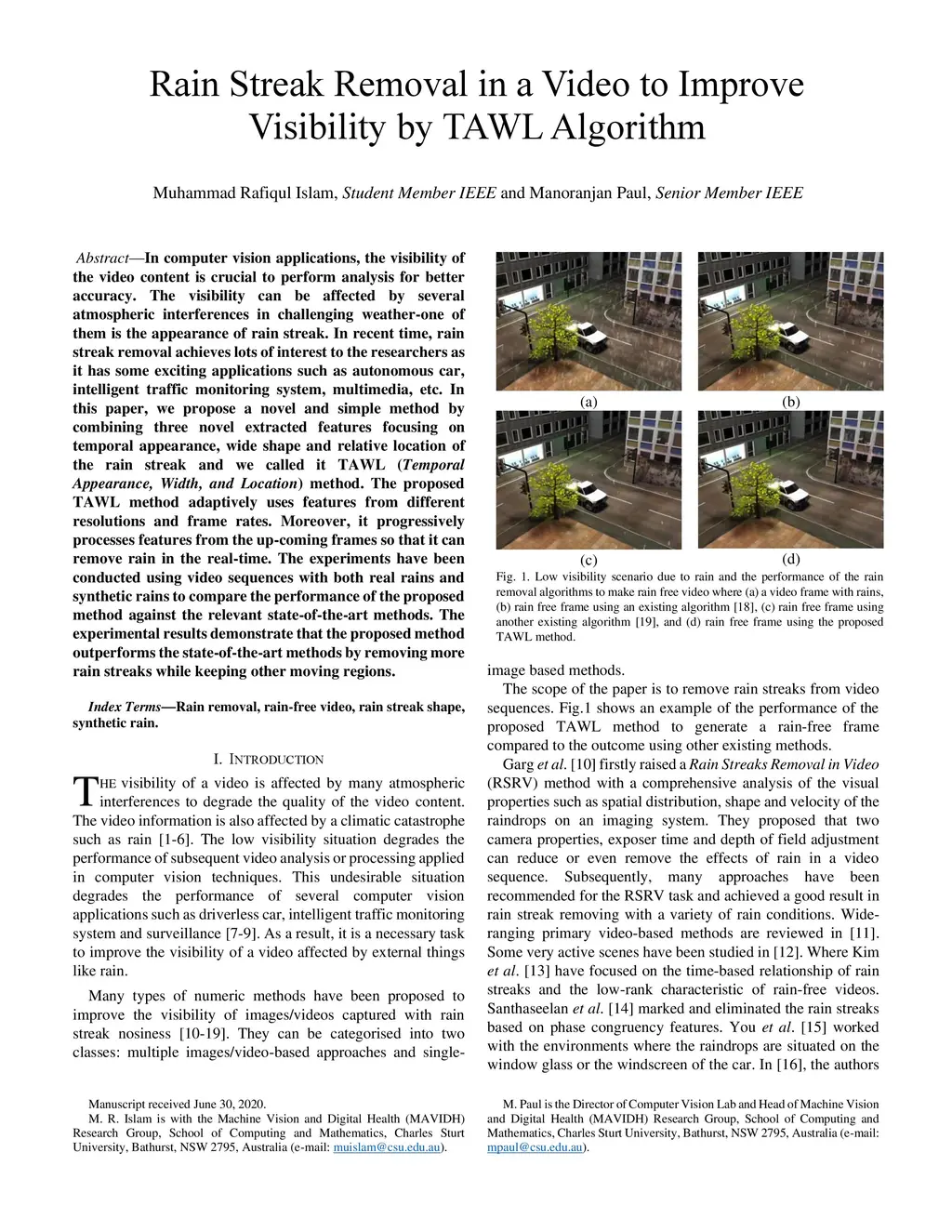 Rain Streak Removal in a Video to Improve Visibility by TAWL Algorithm