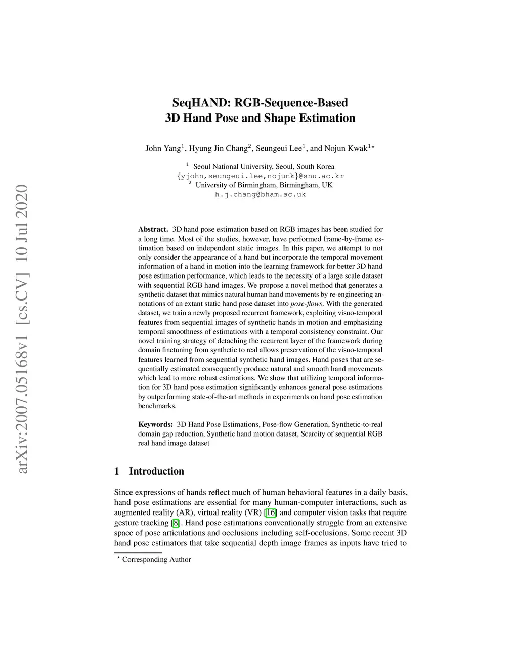 SeqHAND:RGB-Sequence-Based 3D Hand Pose and Shape Estimation
