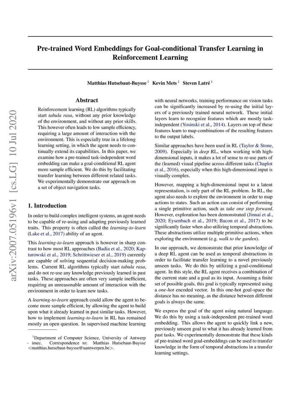 Pre-trained Word Embeddings for Goal-conditional Transfer Learning in