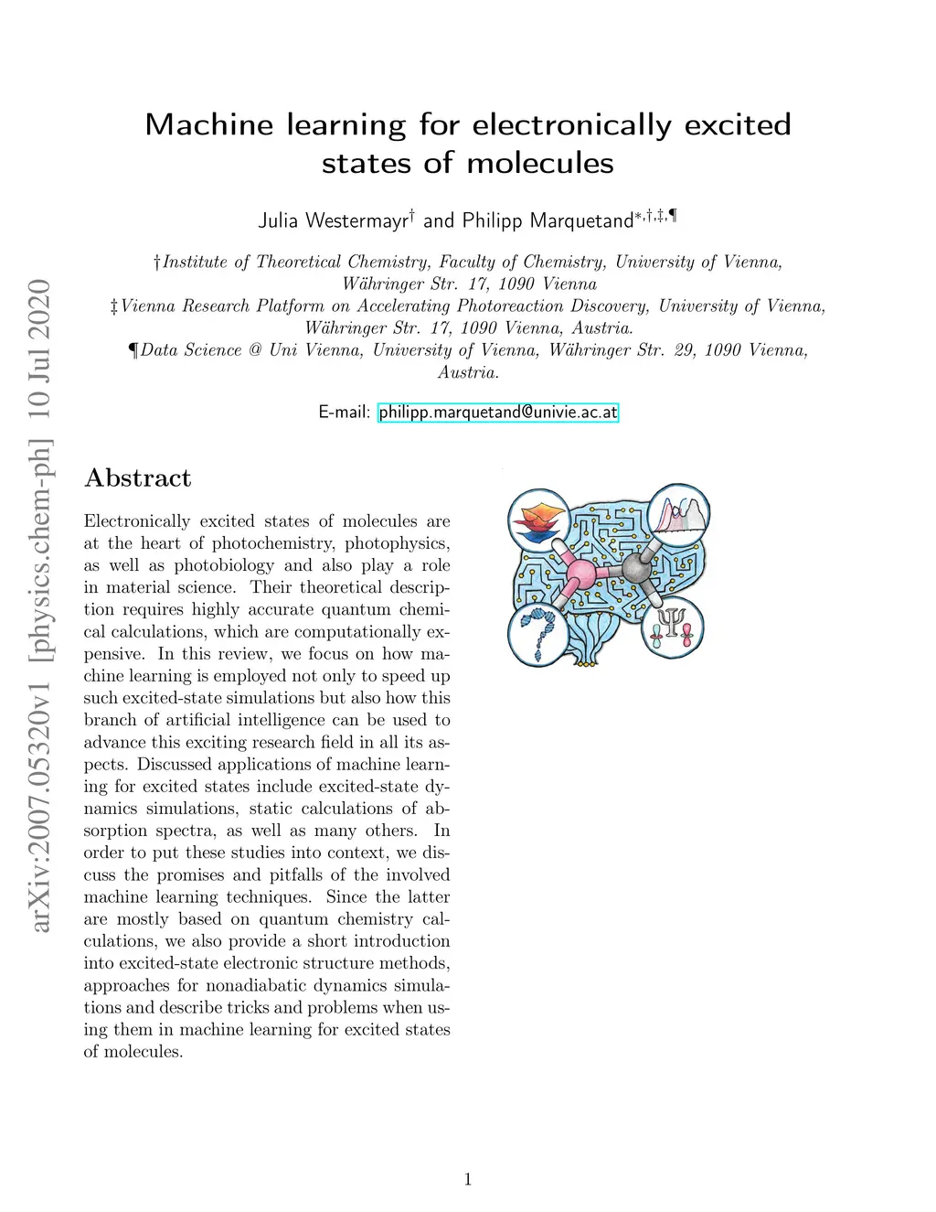 Electronically excited states of molecules are at the heart of photochemistry, photophysics, as well as photobiology and also play a role in material science. Their theoretical description requires highly accurate quantum chemical calculations, which are computationally expensive. In this review, we focus on how machine learning is employed not only to speed up such excited-state simulations but also how this branch of artificial intelligence can be used to advance this exciting research field in all its aspects. Discussed applications of machine learning for excited states include excited-state dynamics simulations, static calculations of absorption spectra, as well as many others. In order to put these studies into context, we discuss the promises and pitfalls of the involved machine learning techniques. Since the latter are mostly based on quantum chemistry calculations, we also provide a short introduction into excited-state electronic structure methods, approaches for nonadiabatic dynamics simulations and describe tricks and problems when using them in machine learning for excited states of molecules.