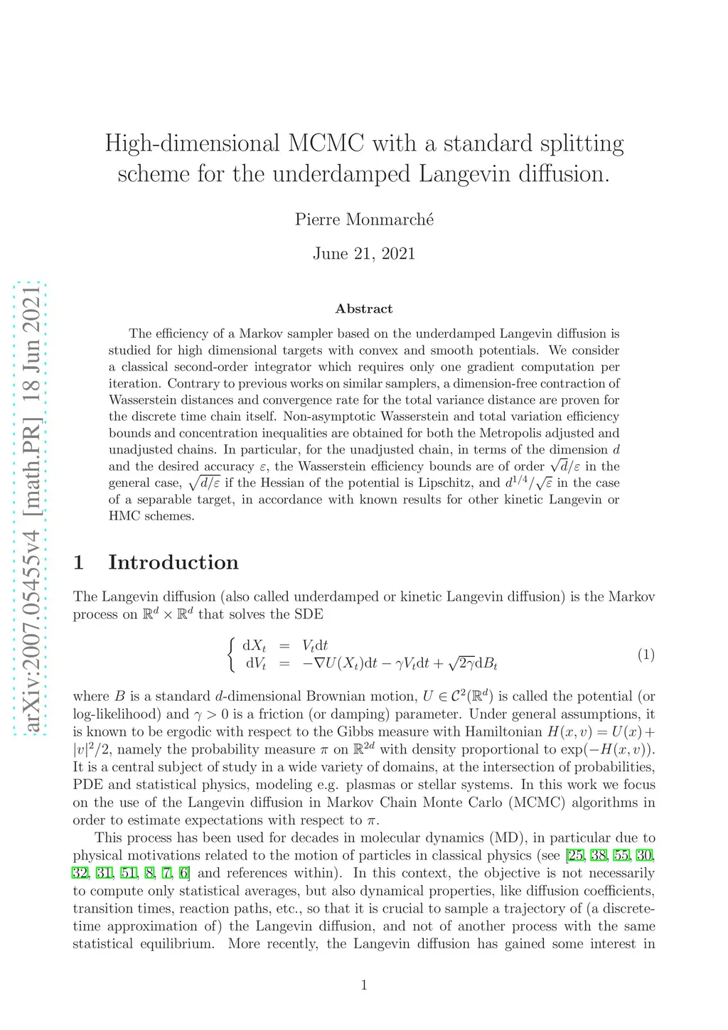 underdamped Langevin diffusion
