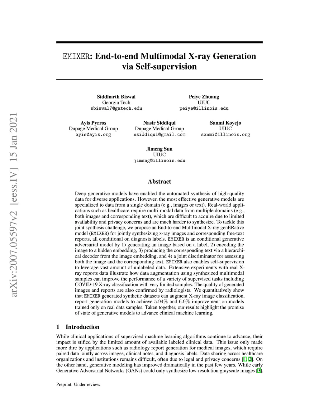 EMIXER: End-to-end Multimodal X-ray Generation via Self-supervision