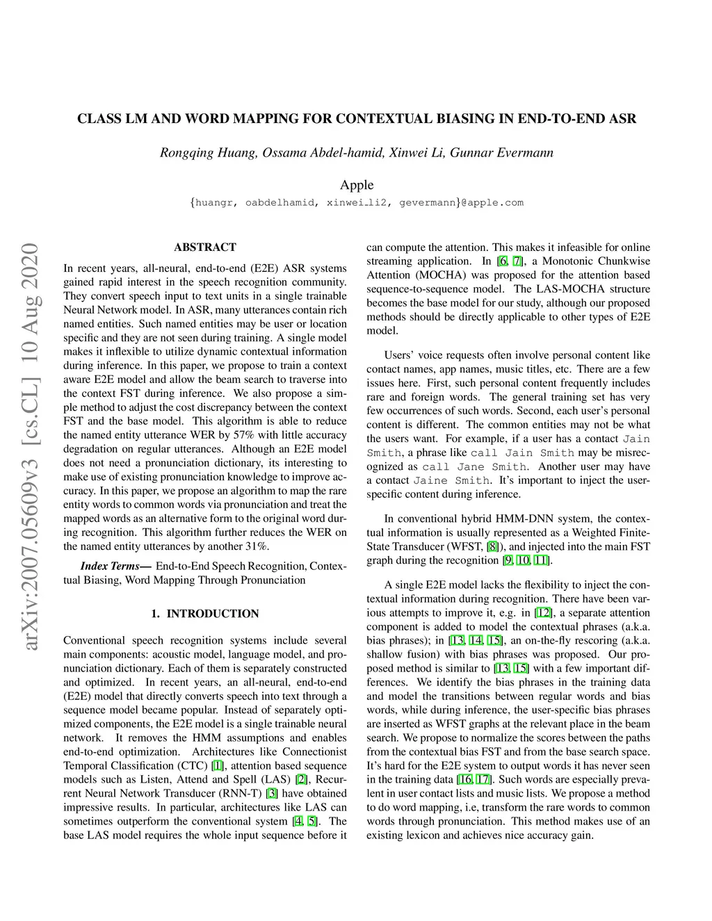 Class LM and word mapping for contextual biasing in End-to-End ASR