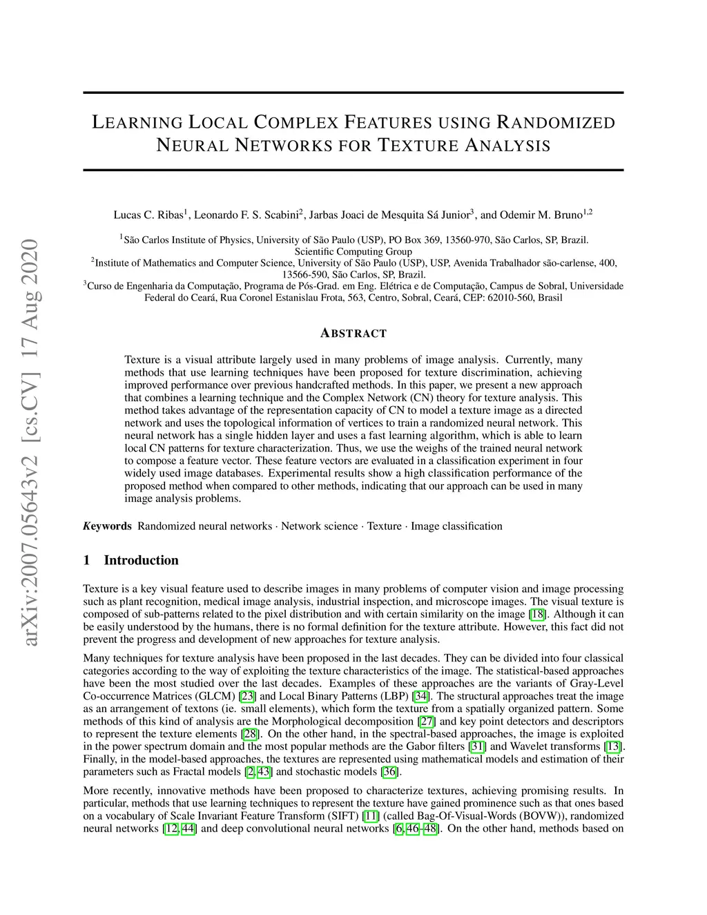 Texture is a visual attribute largely used in many problems of image analysis. Currently, many methods that use learning techniques have been proposed for texture discrimination, achieving improved performance over previous handcrafted methods. In this paper, we present a new approach that combines a learning technique and the Complex Network (CN) theory for texture analysis. This method takes advantage of the representation capacity of CN to model a texture image as a directed network and uses the topological information of vertices to train a randomized neural network. This neural network has a single hidden layer and uses a fast learning algorithm, which is able to learn local CN patterns for texture characterization. Thus, we use the weighs of the trained neural network to compose a feature vector. These feature vectors are evaluated in a classification experiment in four widely used image databases. Experimental results show a high classification performance of the proposed method when compared to other methods, indicating that our approach can be used in many image analysis problems.