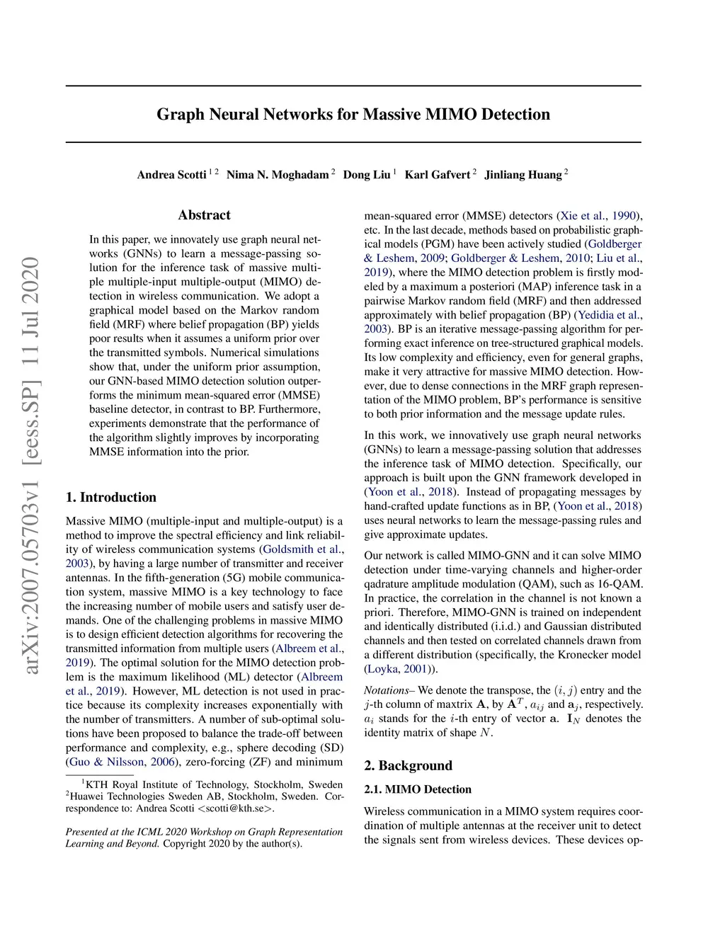 In this paper, we innovately use graph neural networks (GNNs) to learn a message-passing solution for the inference task of massive multiple multiple-input multiple-output (MIMO) detection in wireless communication. We adopt a graphical model based on the Markov random field (MRF) where belief propagation (BP) yields poor results when it assumes a uniform prior over the transmitted symbols. Numerical simulations show that, under the uniform prior assumption, our GNN-based MIMO detection solution outperforms the minimum mean-squared error (MMSE) baseline detector, in contrast to BP. Furthermore, experiments demonstrate that the performance of the algorithm slightly improves by incorporating MMSE information into the prior.