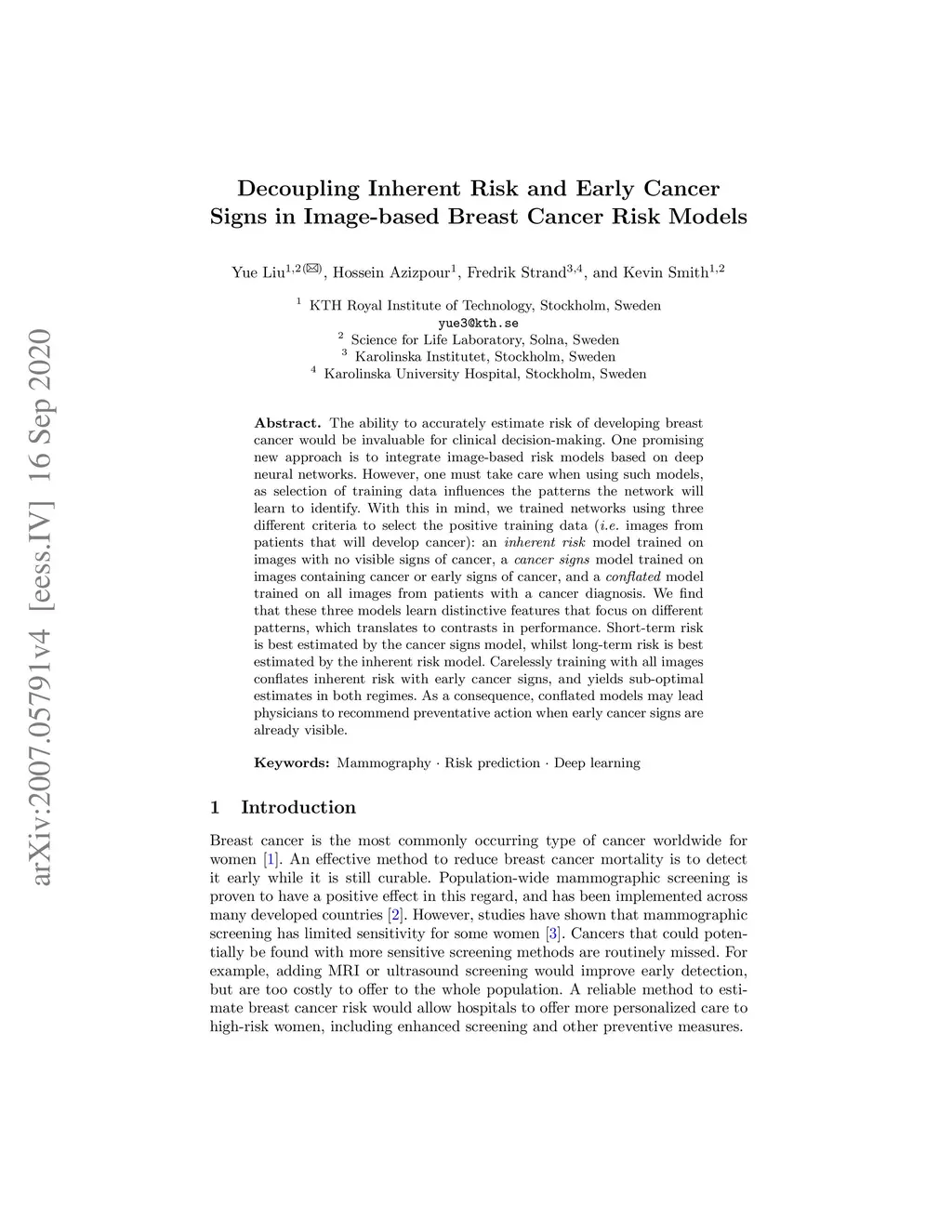 Decoupling Inherent Risk and Early Cancer Signs in Image-based Breast