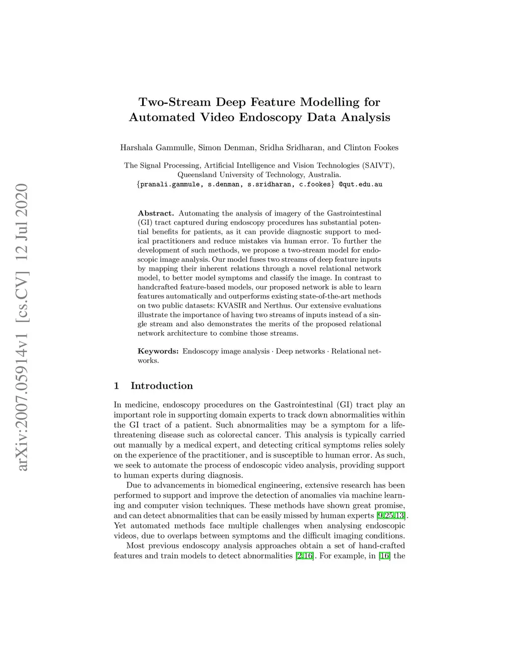 Two-Stream Deep Feature Modelling for Automated Video Endoscopy Data