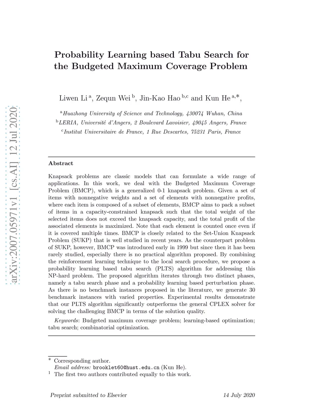 Probability Learning based Tabu Search for the Budgeted Maximum Coverage