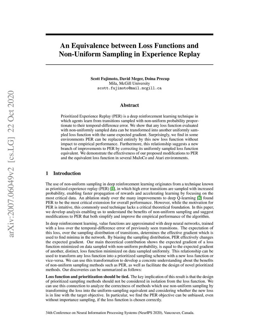 Prioritized Experience Replay (PER) is a deep reinforcement learning technique in which agents learn from transitions sampled with non-uniform probability proportionate to their temporal-difference error. We show that any loss function evaluated with non-uniformly sampled data can be transformed into another uniformly sampled loss function with the same expected gradient. Surprisingly, we find in some environments PER can be replaced entirely by this new loss function without impact to empirical performance. Furthermore, this relationship suggests a new branch of improvements to PER by correcting its uniformly sampled loss function equivalent. We demonstrate the effectiveness of our proposed modifications to PER and the equivalent loss function in several MuJoCo and Atari environments.