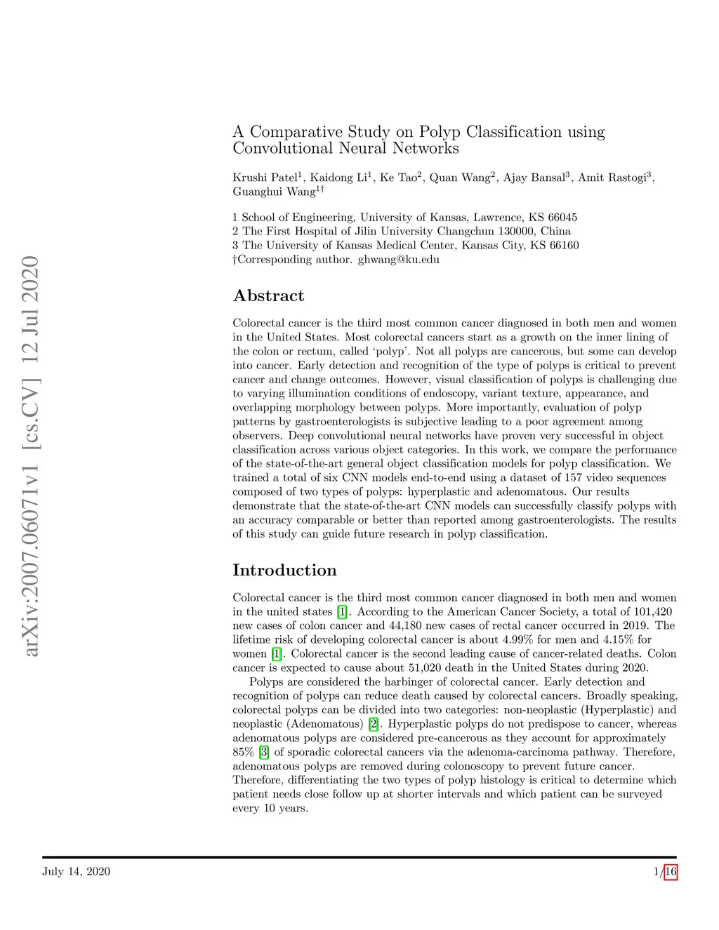 A Comparative Study on Polyp Classification using Convolutional Neural