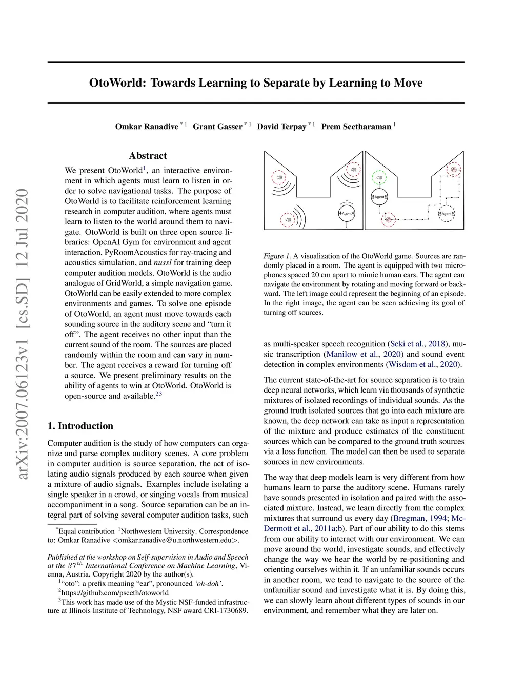 OtoWorld: Towards Learning to Separate by Learning to Move
