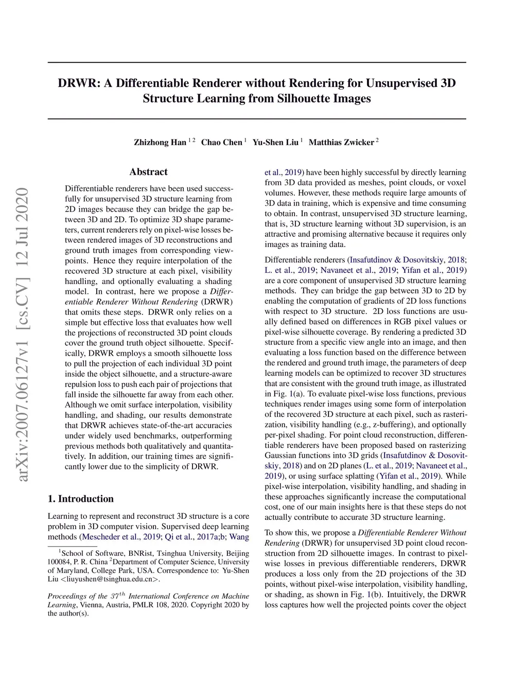 DRWR: A Differentiable Renderer without Rendering for Unsupervised 3D