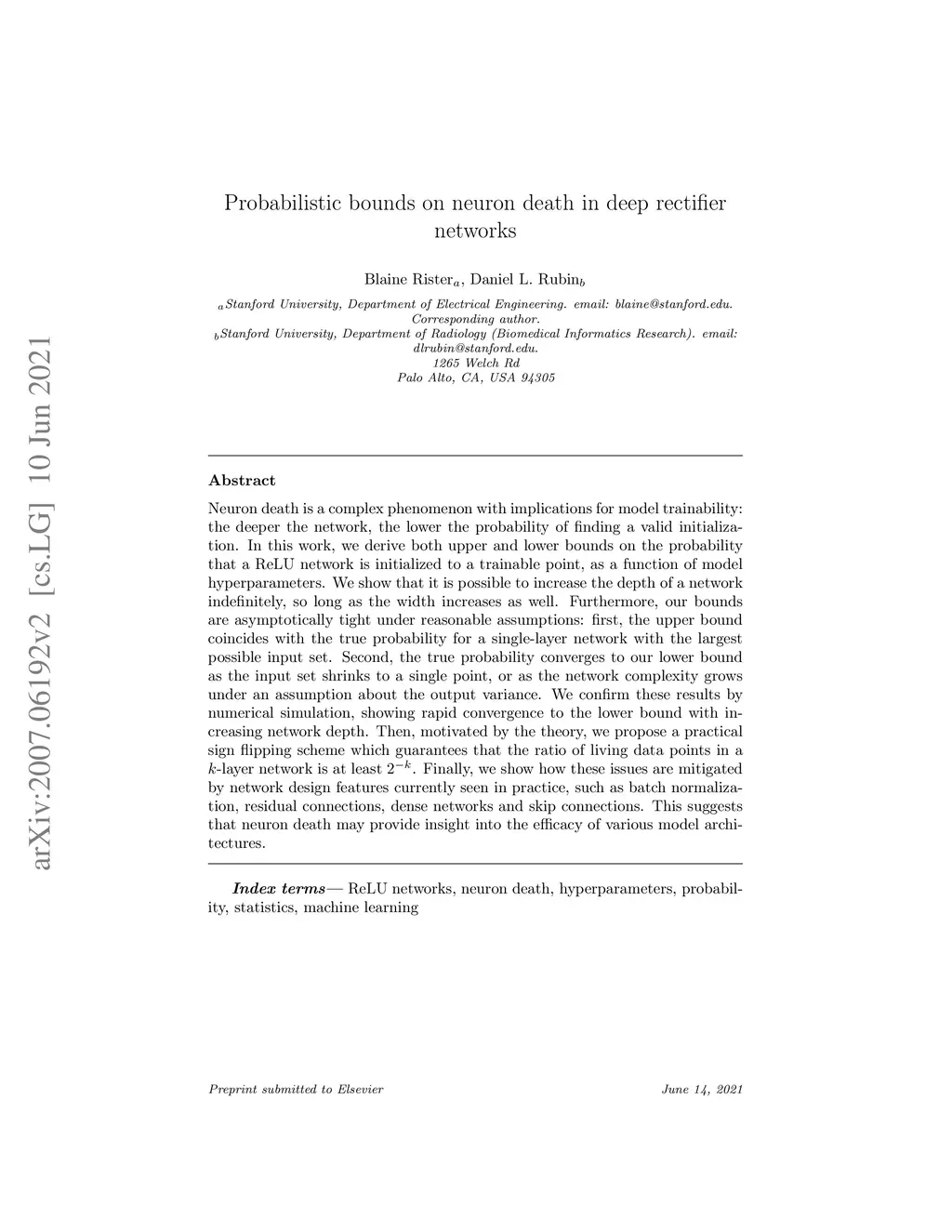 Probabilistic bounds on neuron death in deep rectifier networks