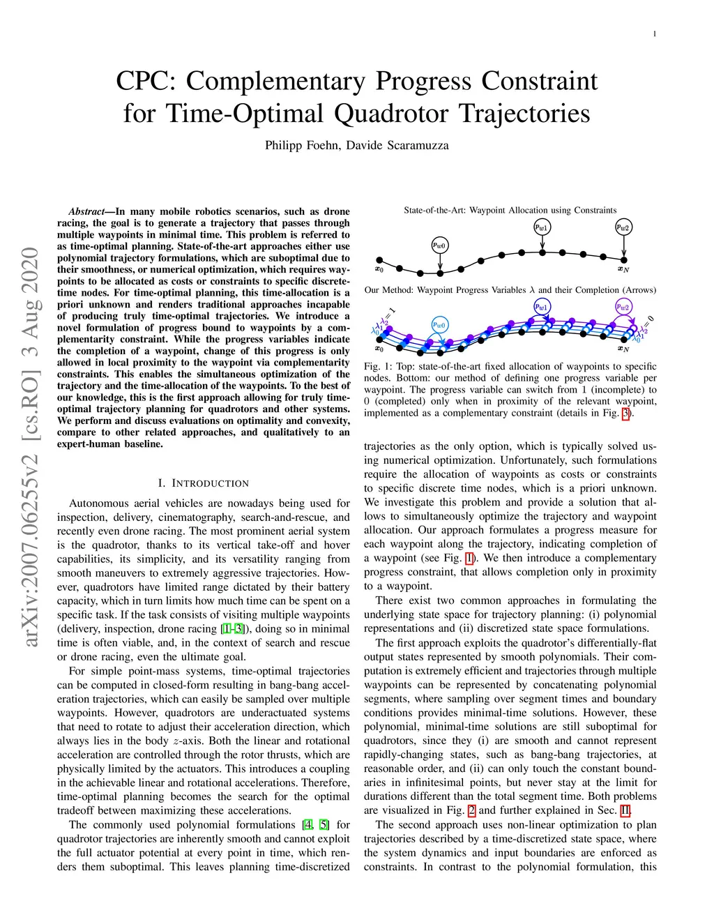 CPC: Complementary Progress Constraints for Time-Optimal Quadrotor