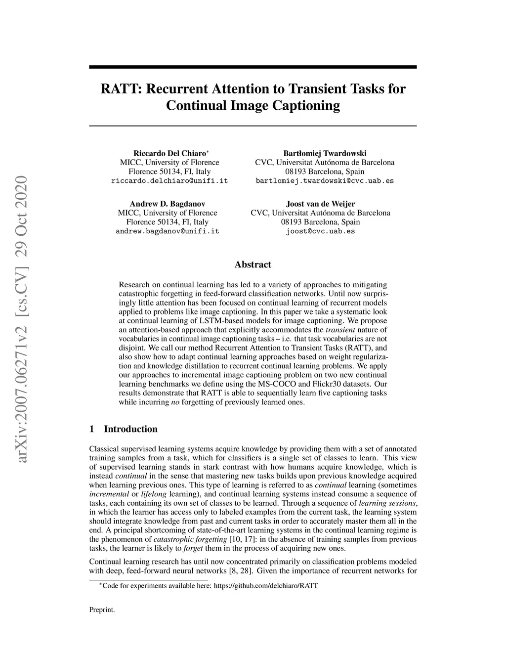 RATT: Recurrent Attention to Transient Tasks for Continual Image