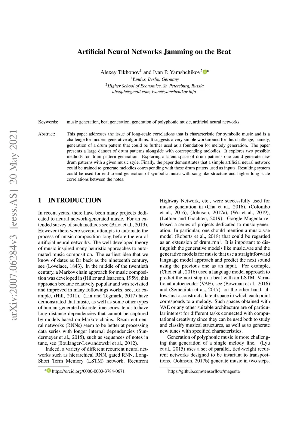 Artificial Neural Networks Jamming on the Beat
