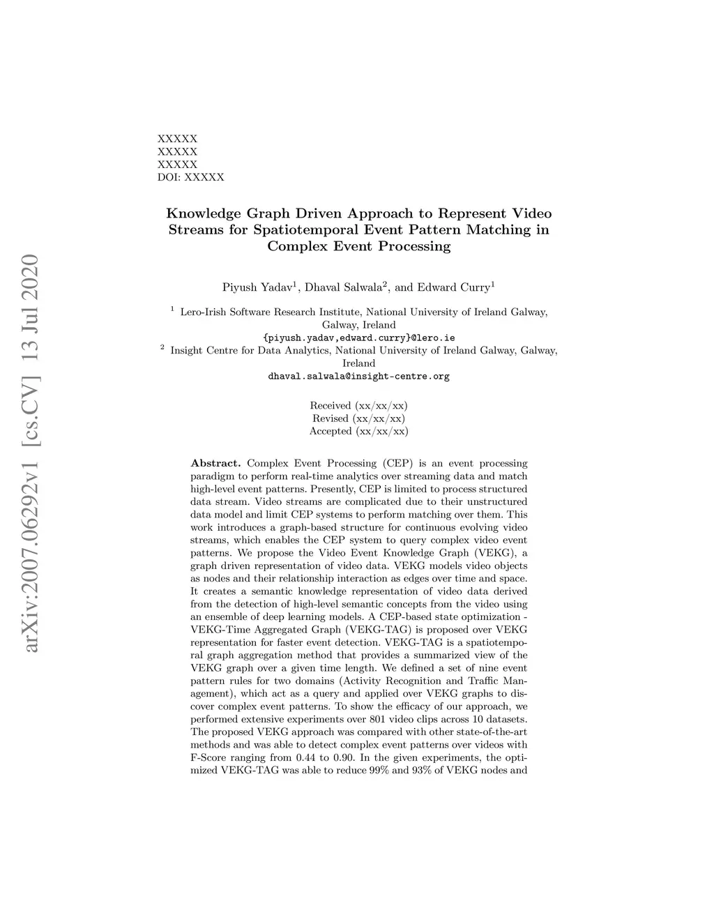 Knowledge Graph Driven Approach to Represent Video Streams for