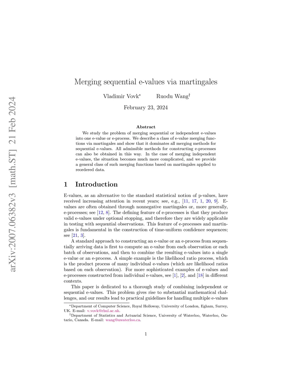 We study the problem of merging sequential or independent e-values into one e-value or e-process. We describe a class of e-value merging functions via martingales and show that it dominates all merging methods for sequential e-values. All admissible methods for constructing e-processes can also be obtained in this way. In the case of merging independent e-values, the situation becomes much more complicated, and we provide a general class of such merging functions based on martingales applied to reordered data.