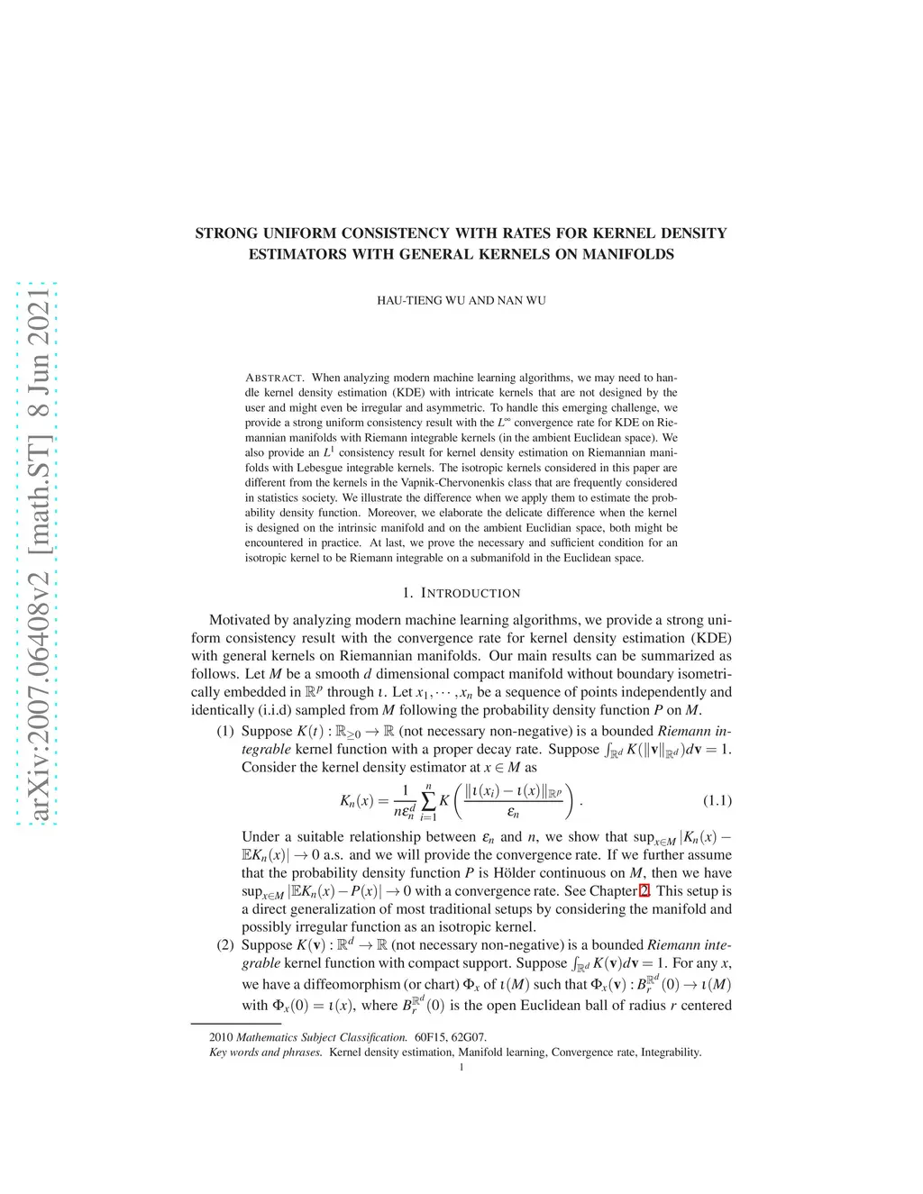 When analyzing modern machine learning algorithms, we may need to handle kernel density estimation (KDE) with intricate kernels that are not designed by the user and might even be irregular and asymmetric. To handle this emerging challenge, we provide a strong uniform consistency result with the convergence rate for KDE on Riemannian manifolds with Riemann integrable kernels (in the ambient Euclidean space). We also provide an consistency result for kernel density estimation on Riemannian manifolds with Lebesgue integrable kernels. The isotropic kernels considered in this paper are different from the kernels in the Vapnik-Chervonenkis class that are frequently considered in statistics society. We illustrate the difference when we apply them to estimate the probability density function. Moreover, we elaborate the delicate difference when the kernel is designed on the intrinsic manifold and on the ambient Euclidian space, both might be encountered in practice. At last, we prove the necessary and sufficient condition for an isotropic kernel to be Riemann integrable on a submanifold in the Euclidean space.