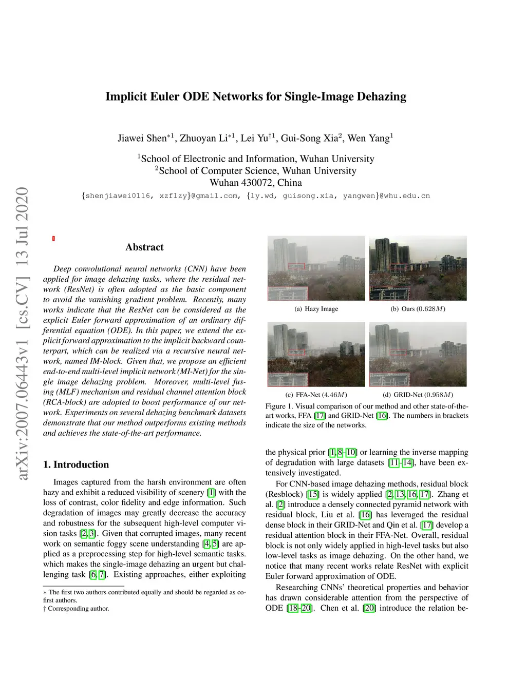 Implicit Euler ODE Networks for Single-Image Dehazing