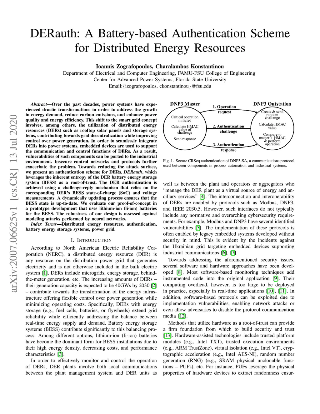 DERauth: A Battery-based Authentication Scheme for Distributed Energy