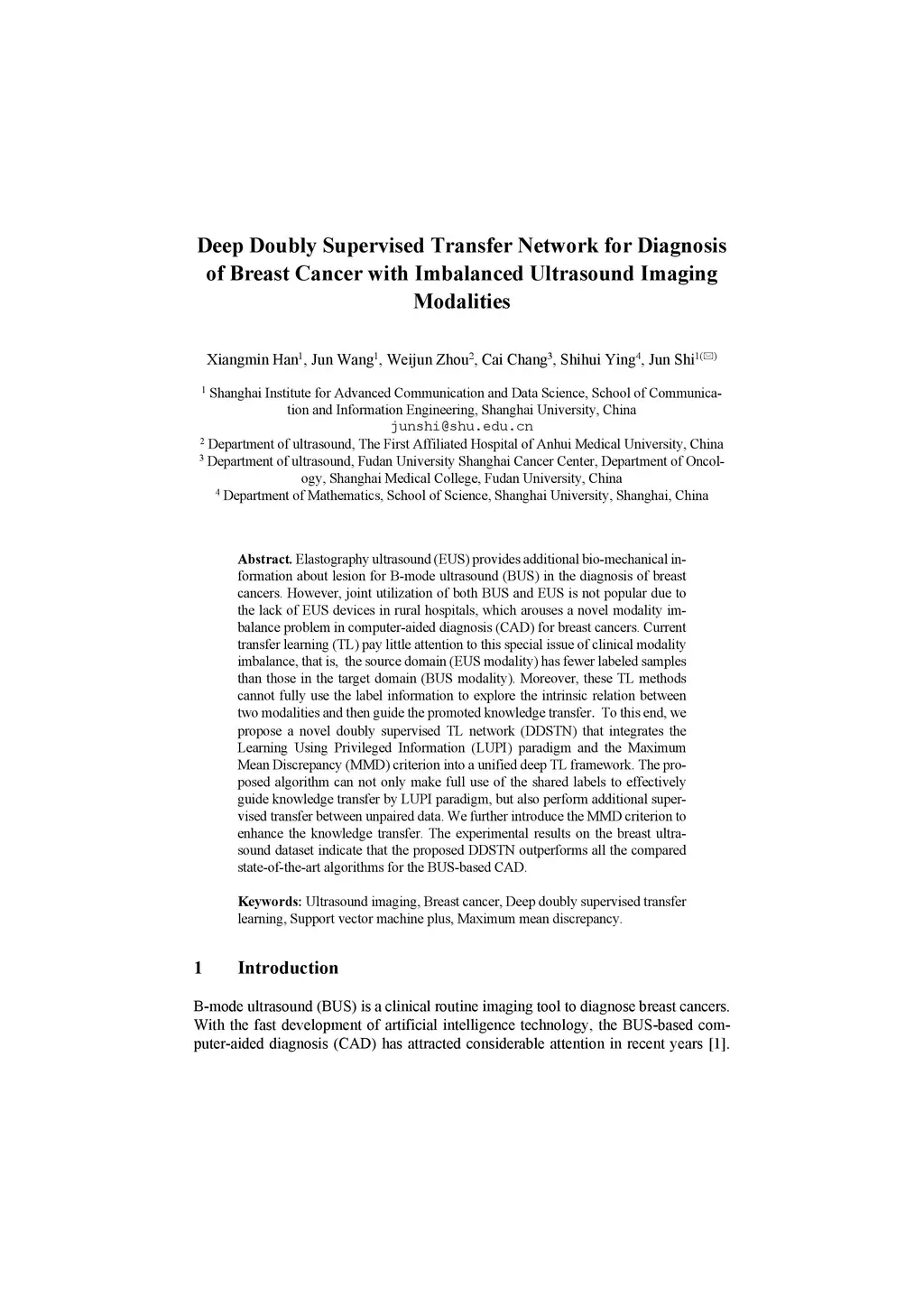 Deep Doubly Supervised Transfer Network for Diagnosis of Breast Cancer