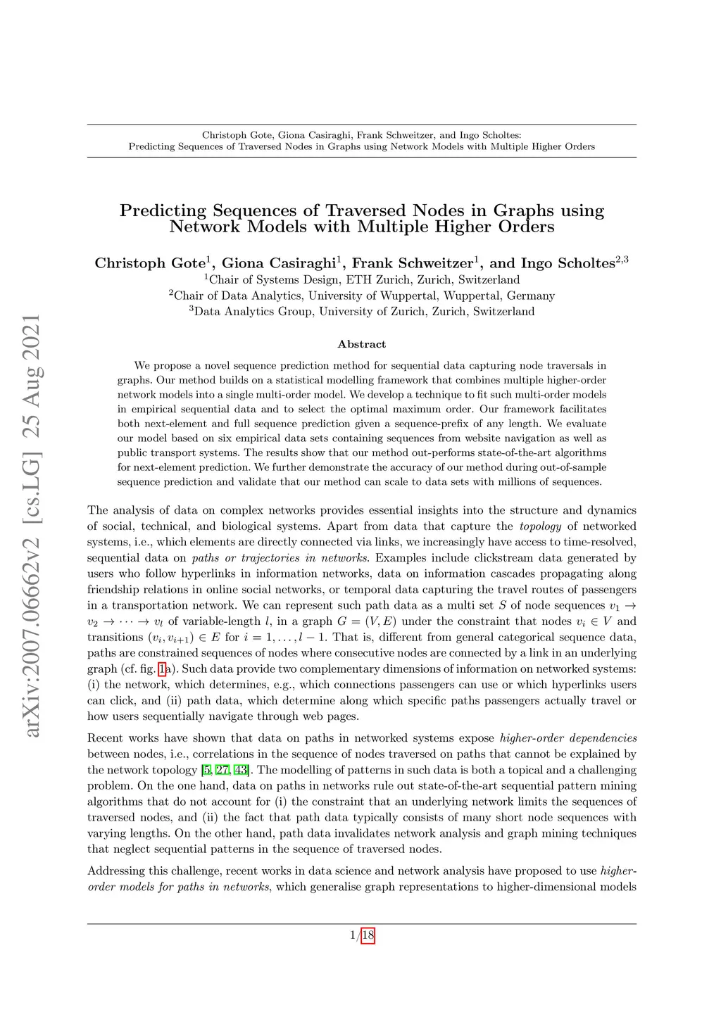 Predicting Sequences of Traversed Nodes in Graphs using Network Models