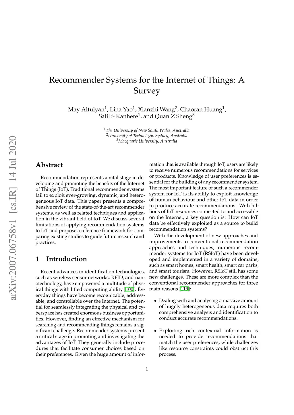 Recommender Systems for the Internet of Things: A Survey