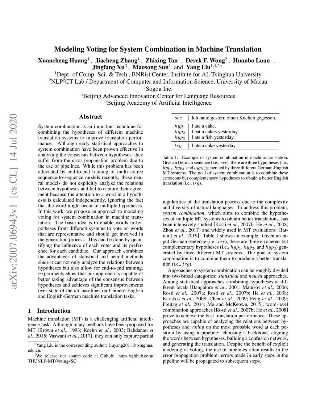 Modeling Voting for System Combination in Machine Translation