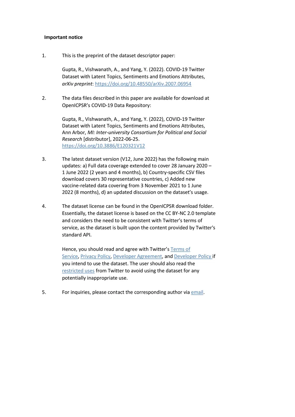 COVID-19 Twitter Dataset with Latent Topics, Sentiments and Emotions