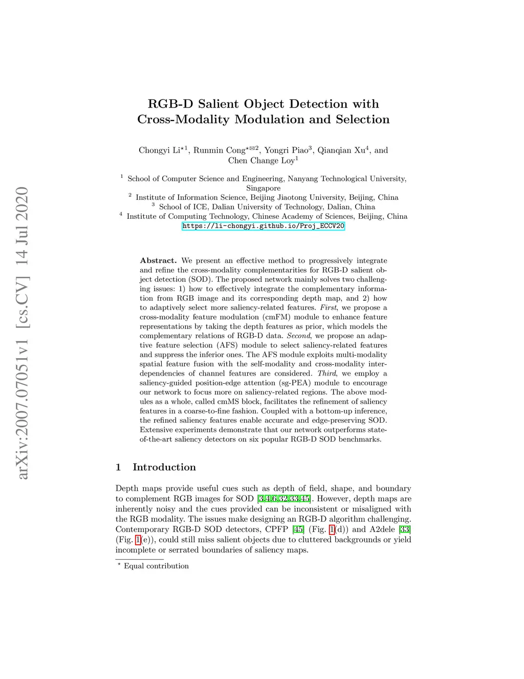 RGB-D Salient Object Detection with Cross-Modality Modulation and