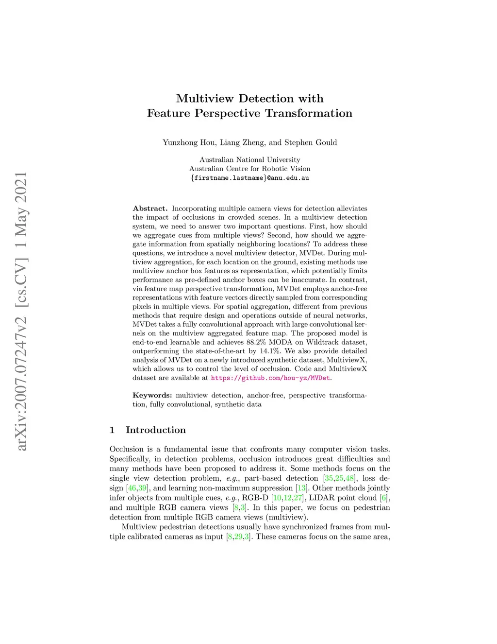 Multiview Detection with Feature Perspective Transformation