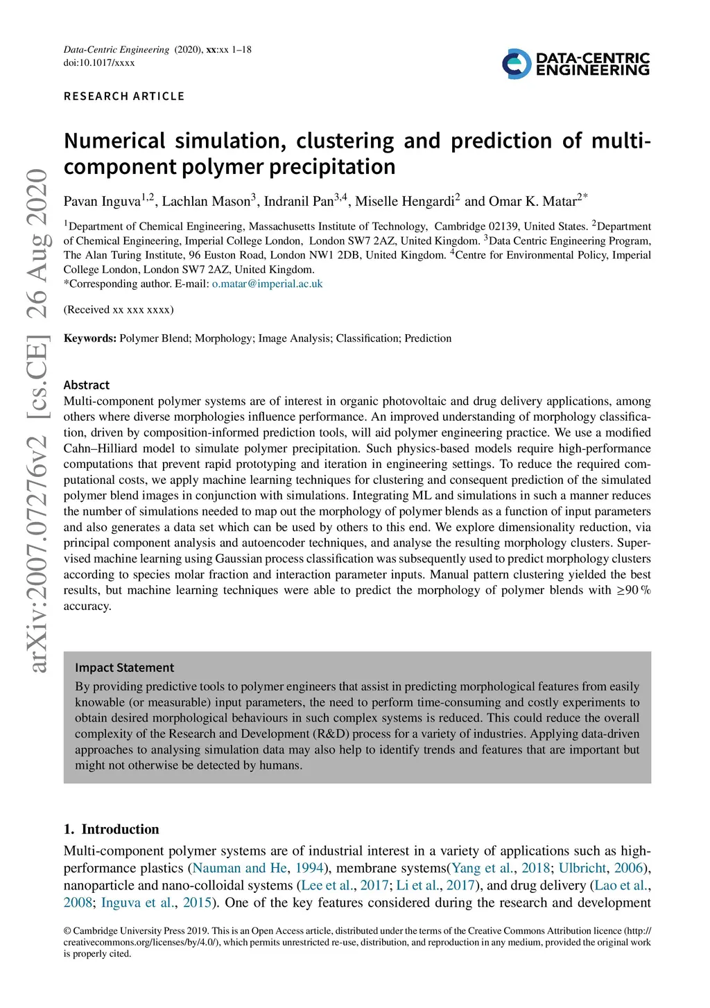 Numerical simulation, clustering and prediction of multi-component