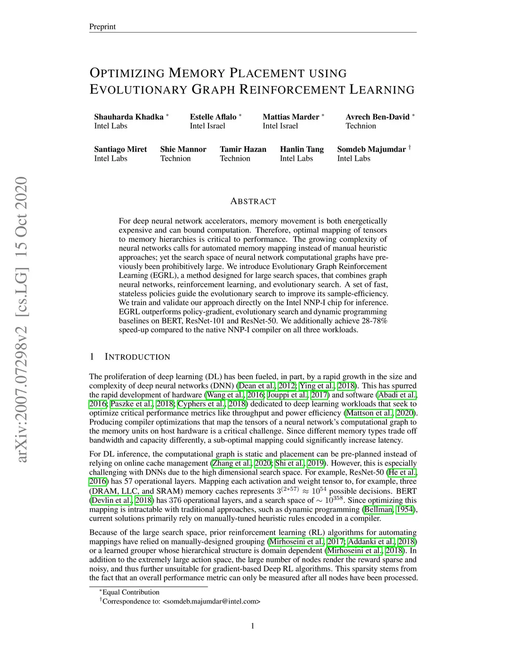 Optimizing Memory Placement using Evolutionary Graph Reinforcement