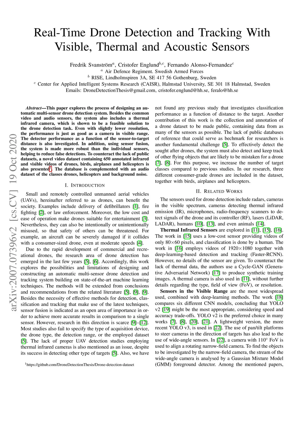 Real-Time Drone Detection and Tracking With Visible, Thermal and