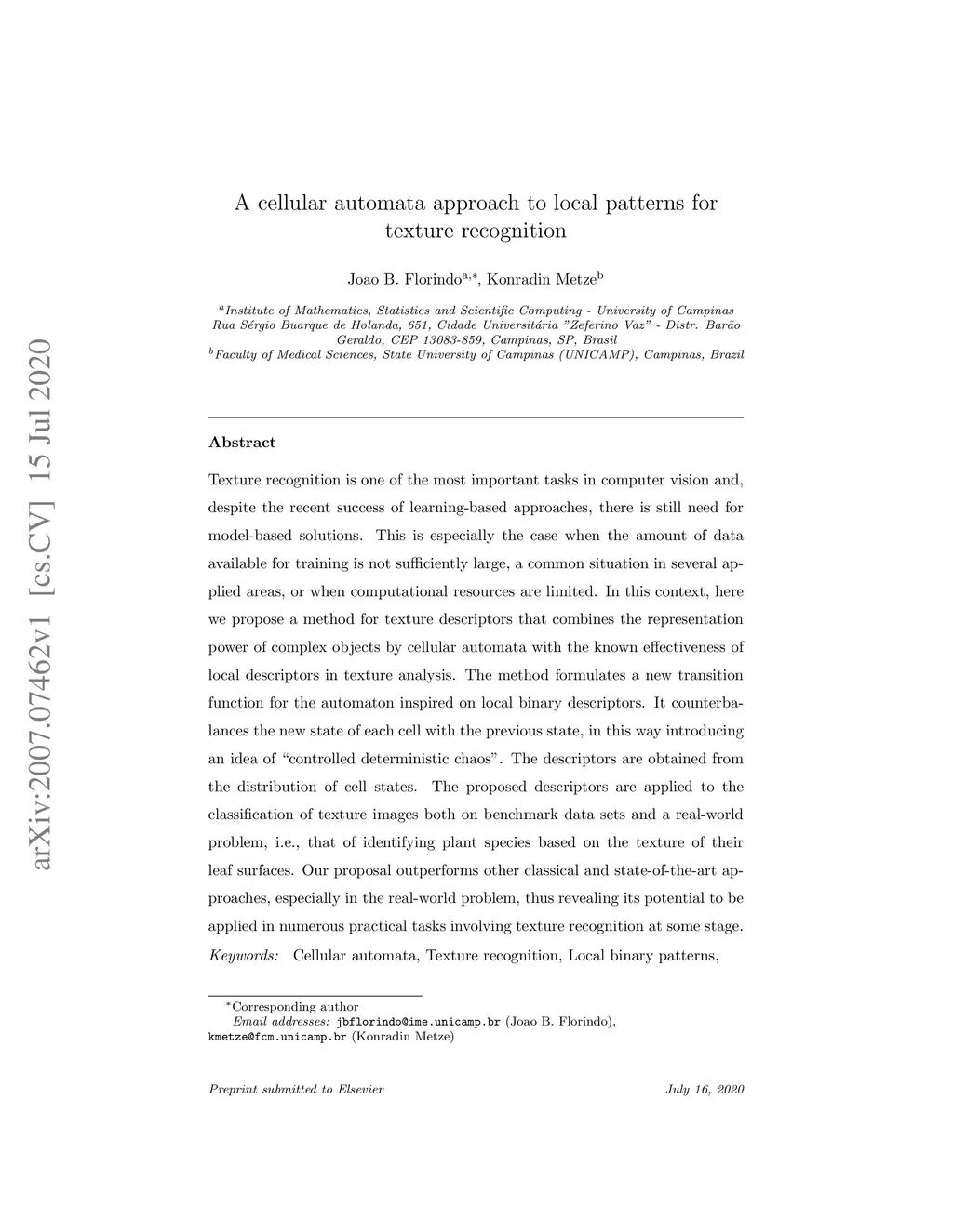 A cellular automata approach to local patterns for texture recognition