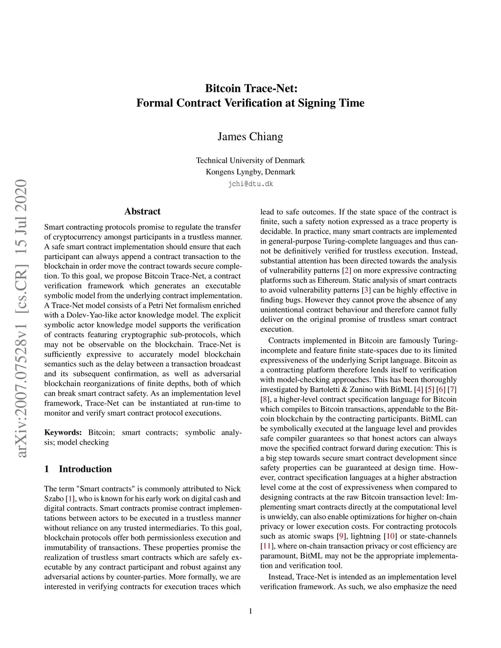 Bitcoin Trace-Net: Formal Contract Verification at Signing Time