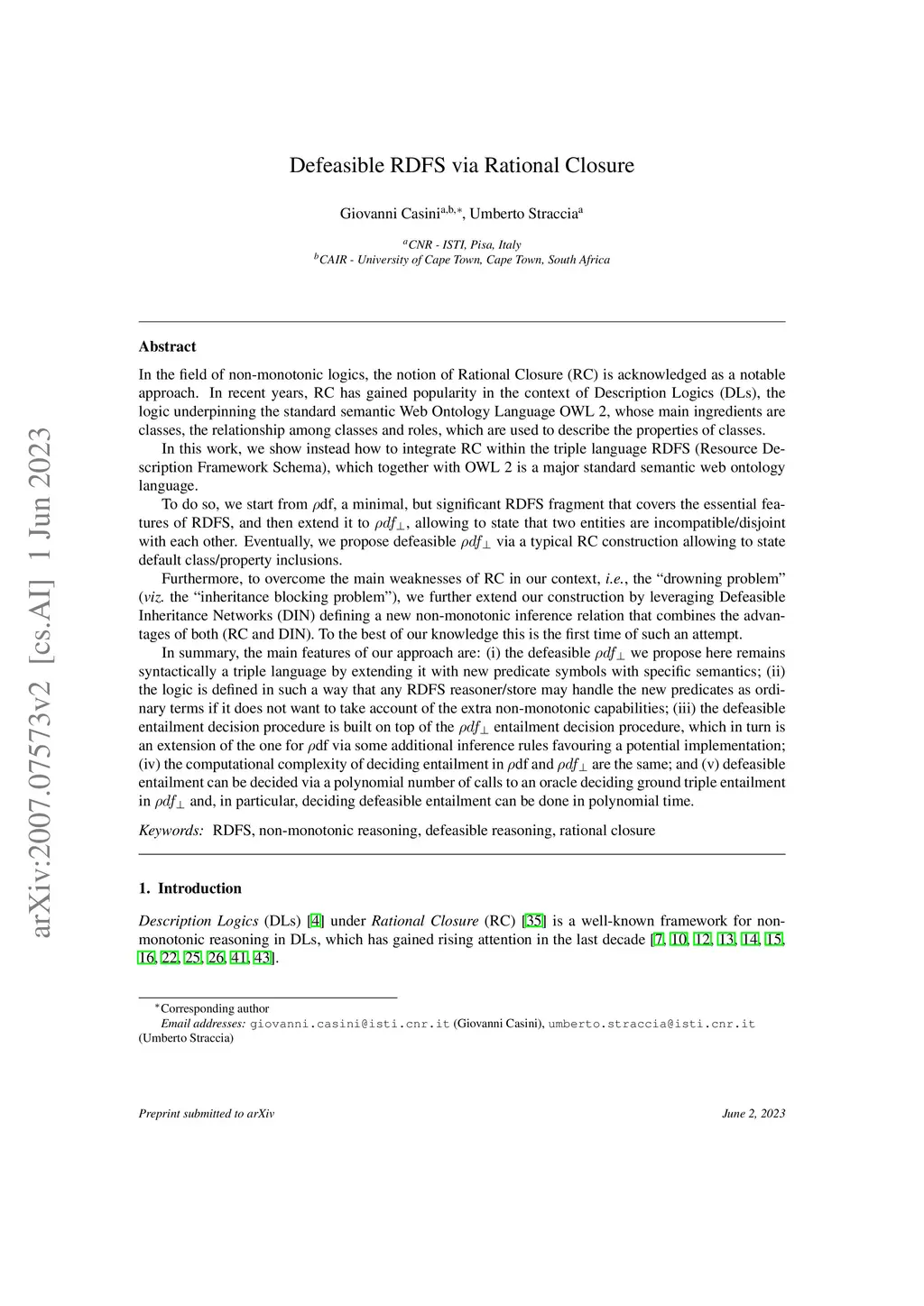 In the field of non-monotonic logics, the notion of Rational Closure (RC) is acknowledged as a prominent approach. In recent years, RC has gained even more popularity in the context of Description Logics (DLs), the logic underpinning the semantic web standard ontology language OWL 2, whose main ingredients are classes and roles. In this work, we show how to integrate RC within the triple language RDFS, which together with OWL2 are the two major standard semantic web ontology languages. To do so, we start from , which is the logic behind RDFS, and then extend it to , allowing to state that two entities are incompatible. Eventually, we propose defeasible via a typical RC construction. The main features of our approach are: (i) unlike most other approaches that add an extra non-monotone rule layer on top of monotone RDFS, defeasible remains syntactically a triple language and is a simple extension of by introducing some new predicate symbols with specific semantics. In particular, any RDFS reasoner/store may handle them as ordinary terms if it does not want to take account for the extra semantics of the new predicate symbols; (ii) the defeasible entailment decision procedure is build on top of the entailment decision procedure, which in turn is an extension of the one for via some additional inference rules favouring an potential implementation; and (iii) defeasible entailment can be decided in polynomial time.